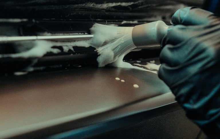 Limpieza de salpicadero, volante, consola central, palanca de cambios y boquillas A/C.